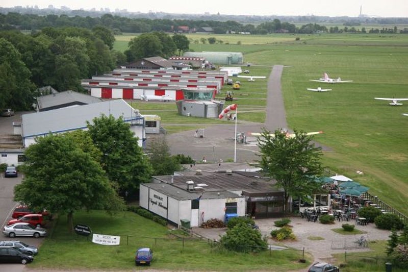 Dit is vliegveld Hilversum waar het vliegtuigje opstijgt met mensen die parachute willen springen (misschien ken je dat vliegtuigje wel).